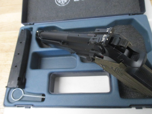 neuwertige Beretta 92 FS, blue, 9mm Para, SA-DA Abzug, verstellbare LPA 3 Dot Visierung, Pachmayr G10 Tactical Griff, Hoque Fingerrillen Kunststoffgriff und Beretta Original Griffschalen, inkl. Reservemagazin in Beretta Kunststoffbox, neues Vega Leder Seitenholster braun mit Sicherungslasche,